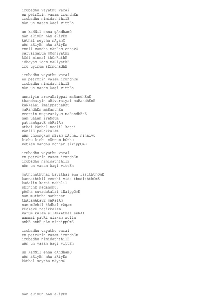 Anbe Peranbe Song Lyrics In Tamil : Listen to sivapuranam lyrics in spb voice… feel the positive vibrations through this….
